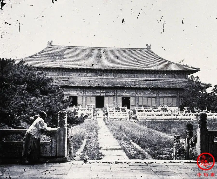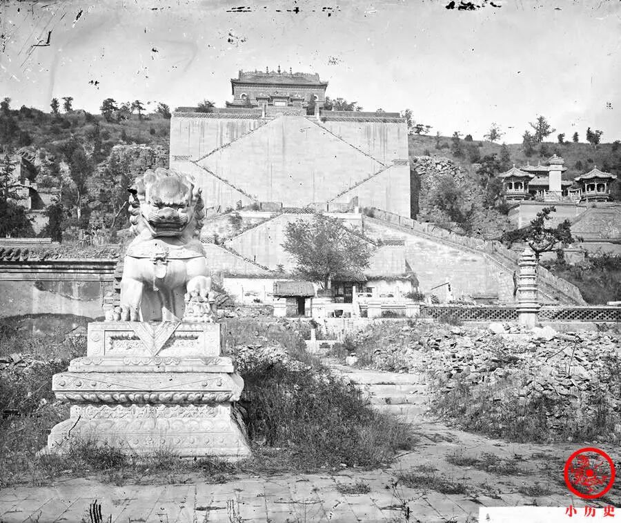 颐和园原名清漪园,1860年被英法联军焚毁。大约10年之后,约翰·汤姆逊到此拍摄了残迹。大报恩延寿寺沦为废墟,位于万寿山腰上辉煌壮丽的佛香阁荡然无存,只剩下高21米的方形台基。