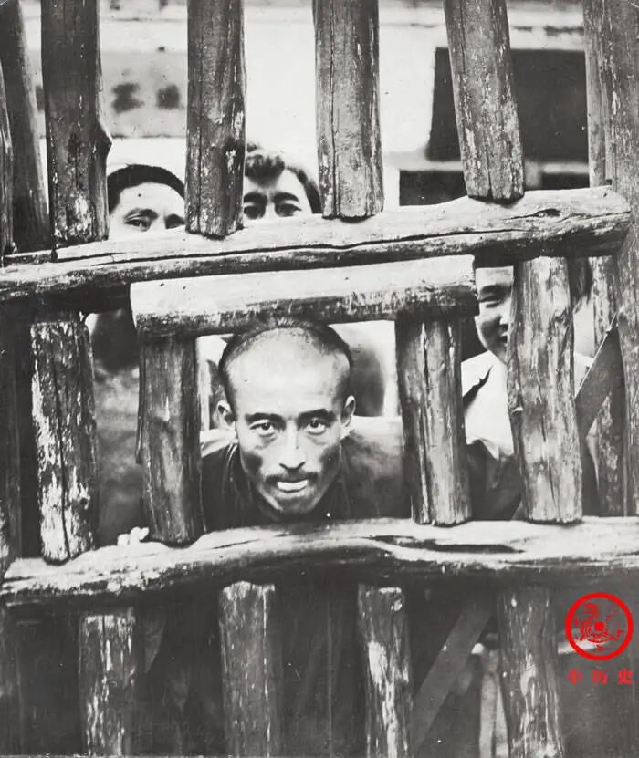 此人探出头来,对着镜头做了个鬼脸,似乎根本不在于自己犯了什么法、将要遭受什么惩罚。