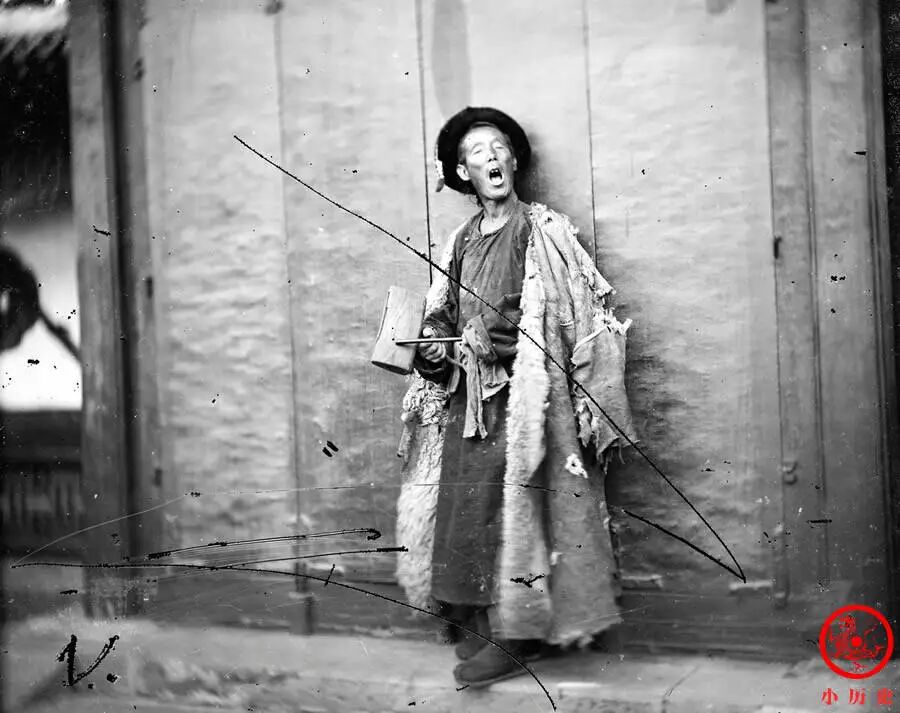 以前我们只在书中看到对穷人的描述,这张照片则给出了直观的呈现。晚清以来社会动荡不安,战争频仍,多种自然灾害交相侵逼,导致百姓生活艰难,更有一部分人失去家园,流离失所,衣食无着。最底层人物的生存状况触目惊心。