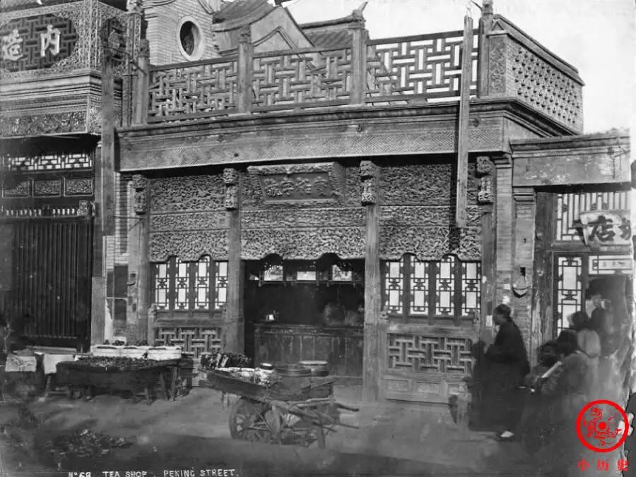 店铺门面非常好看,木雕做工精美,这是老北京的一道风景。只要是开店的,无论大小买卖,都会把门面装潢得漂漂亮亮的。