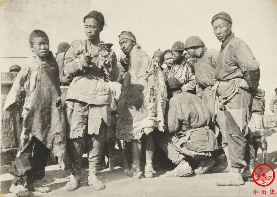 他们在寒冬里穿着破衣烂衫,左边的孩子甚至拿围裙取暖,特别可怜。晚清社会凋敝,大量底层百姓不能安居乐业,季节性的流民和终年流浪的乞丐所在多有。