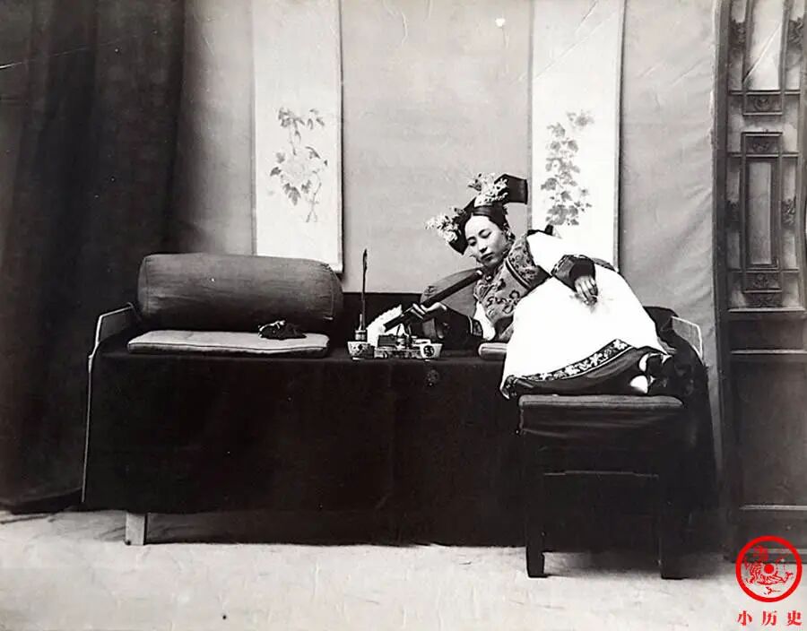 晚清70年,鸦片的流毒遍及大江南北,无论是富商权贵,还是贩夫走卒,数量众多的人沦为瘾君子。根据相关记载,吸食鸦片之人都是男性,没有女性。从这张照片来看,少量女性也有吸食行为。