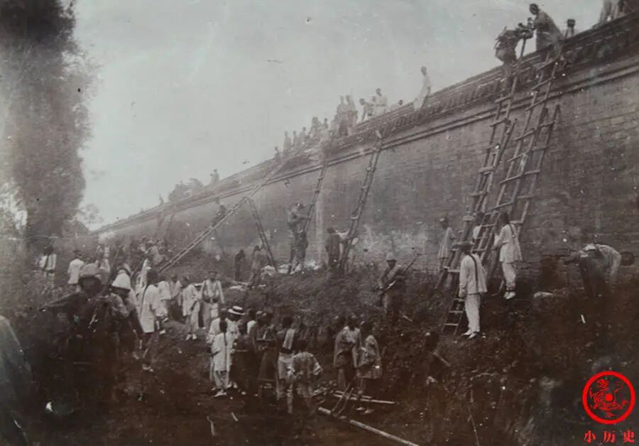 照片记录了法军翻越皇城墙的场景。我们清楚地看到,百姓帮助法军进入皇城,真是令人痛心啊!