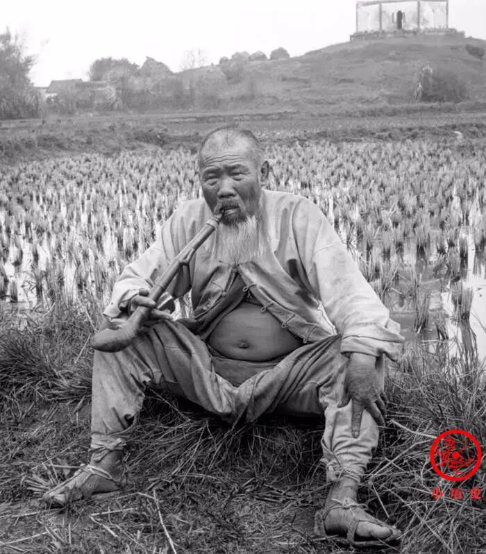 他露出肥硕的肚子,生活似乎很丰足。说实话,在晚清广大农民群体中,像他这样胖乎乎的身材不多见。