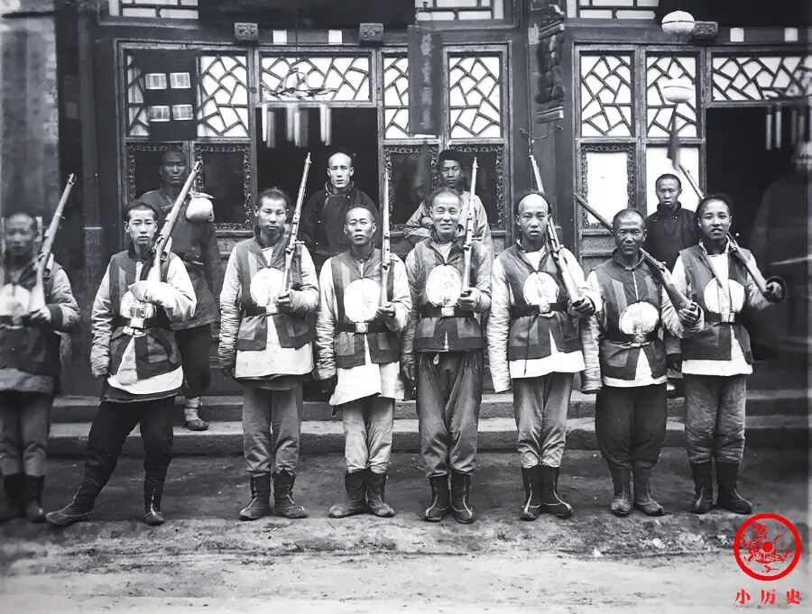 清朝京师设置五城察院,以五城御史为长官,负责中、东、西、南、北五城的治安管理、审理诉讼、缉捕盗贼等事,用现在的眼光看,其兼具公安和法院的双重职能。照片中的这些练勇,类似于警察的早期形态。不过他们的队列松松垮垮,精气神不佳。