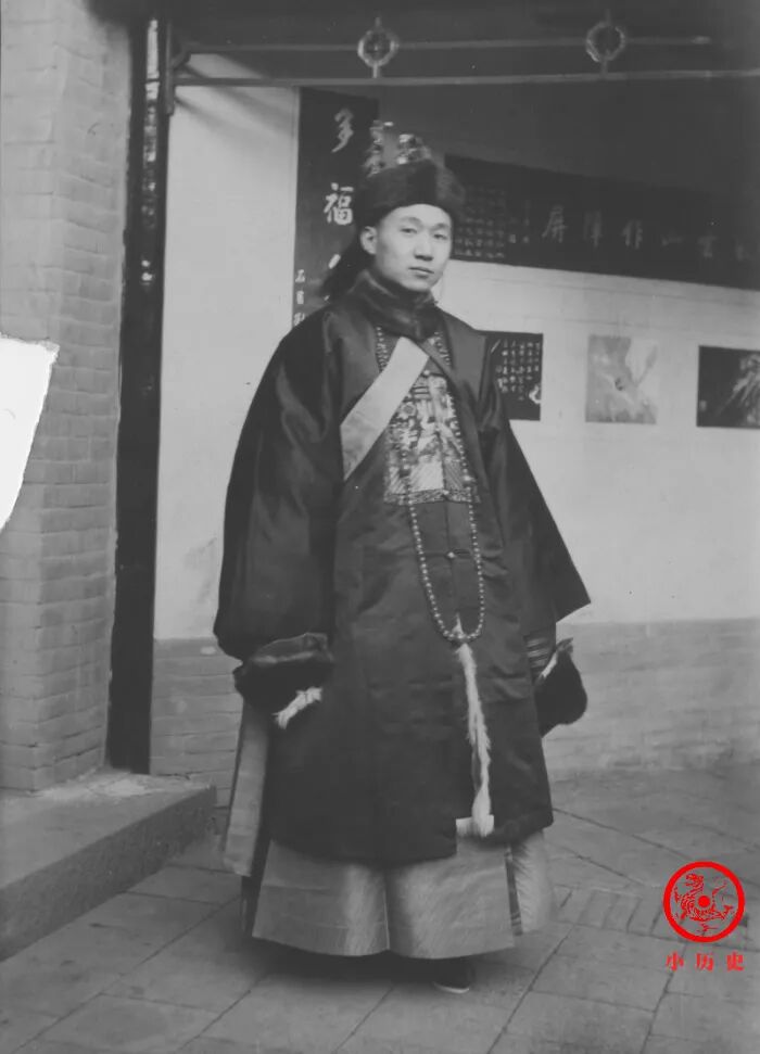 孔祥熙1880年生于山西太谷县一个亦商亦儒的家庭,孔子的第七十五代裔孙。早年进入新式学堂学习,后赴耶鲁大学留学。查阅其个人履历,他没有参加过科举考试,不是清朝臣子,何以穿上了文官补服呢?当时朝廷授予归国留学生进士或举人头衔,他的官服很可能来源于此。清朝灭亡之后,他逐渐显达起来,并成为“四大家族”之一。