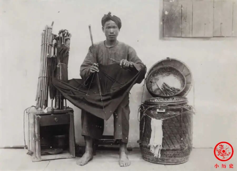 以前人们使用的多是油纸伞(皮棉纸浸桐油),这种伞用久了会破损。不过没关系,无论在城里还是在乡村,都能看到修伞匠人的身影。经过他们灵巧的双手,一顶完整如新的伞又会呈现在你的眼前。