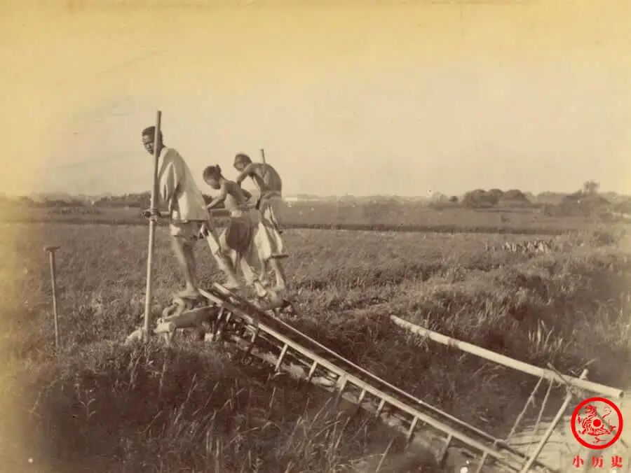 水车有着悠久的历史,东汉以来都是农家必备的灌溉工具,确实起到了促进农业生产的作用。但是到清朝末期仍然使用这种费时、费力的低效率灌溉方式,只能说太落后了。3个劳动力吭哧吭哧踩一天水车,能引多少水、浇多少农田呢?