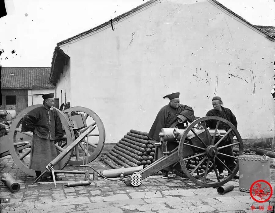 1862年,理查德·J·加特林发明了一种利用手摇曲柄、多枪管、机械自动装填的速射武器,被命名为“加特林机枪”。这种机枪通常由6至10根枪管“捆”成一圈,其射速每分钟可超过200发。1870年前后,李鸿章创办的金陵制造局引进了加特林机枪(当时称为“格林炮”或“格林快炮”),马上对这一先进武器进行仿制。不过,可能因为技术不过关,它并没有大规模装备到清军中。