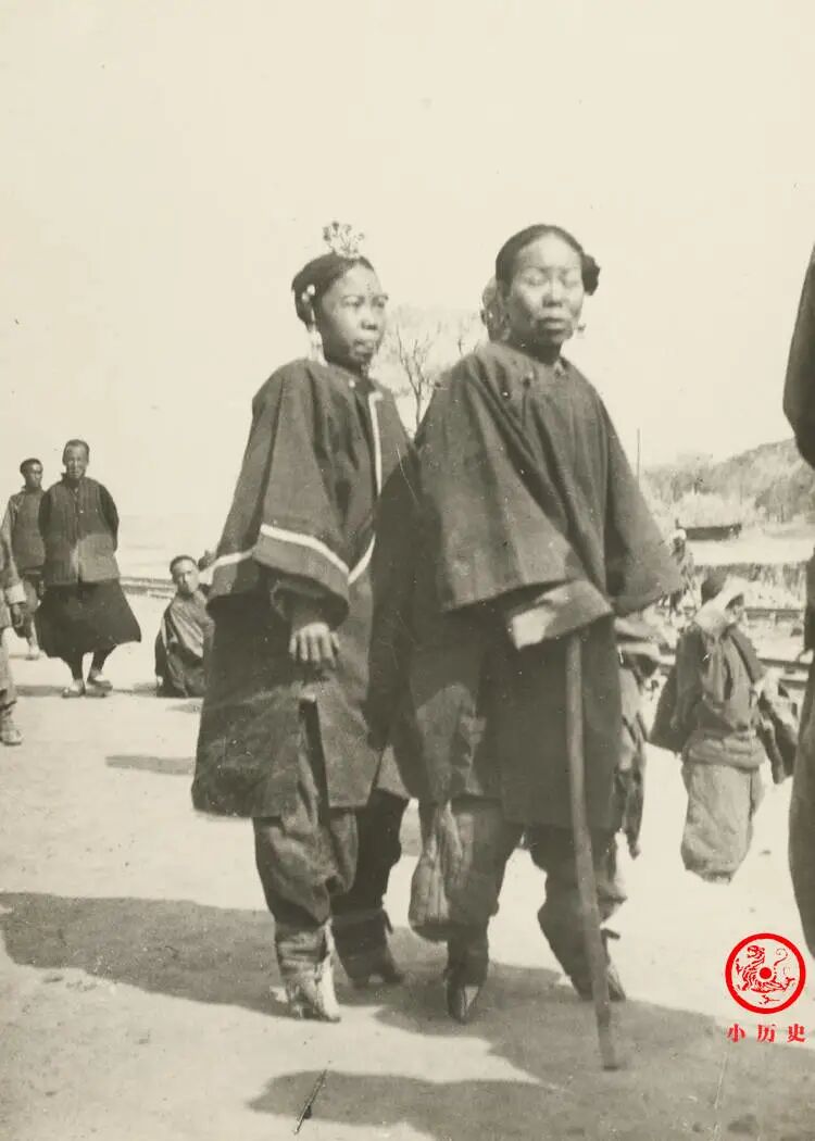 清朝汉族女性普遍缠裹小脚,美其名曰“三寸金莲”,实际上是男人的变态审美,给女性带来极大的身心伤害。由于脚上的骨头被折断,很多女人未到老年就不得不依靠拐杖艰难行走。