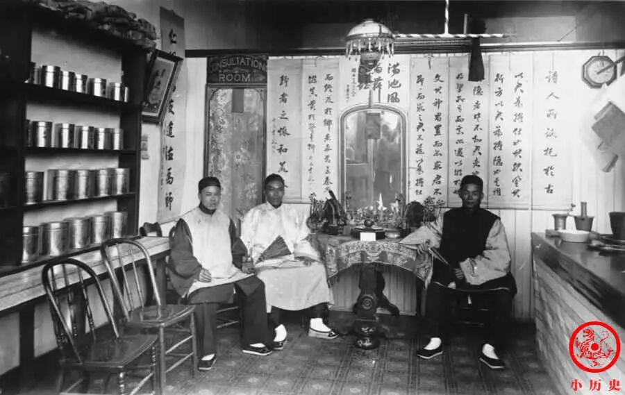 药铺整洁干净,装饰讲究,三位大夫也衣冠整齐,显然属于比较高档的诊所,服务于富贵人家。对广大中下层平民而言,他们生病之后只能向江湖郎中求医问药,请大夫上门是出不起这个钱的。