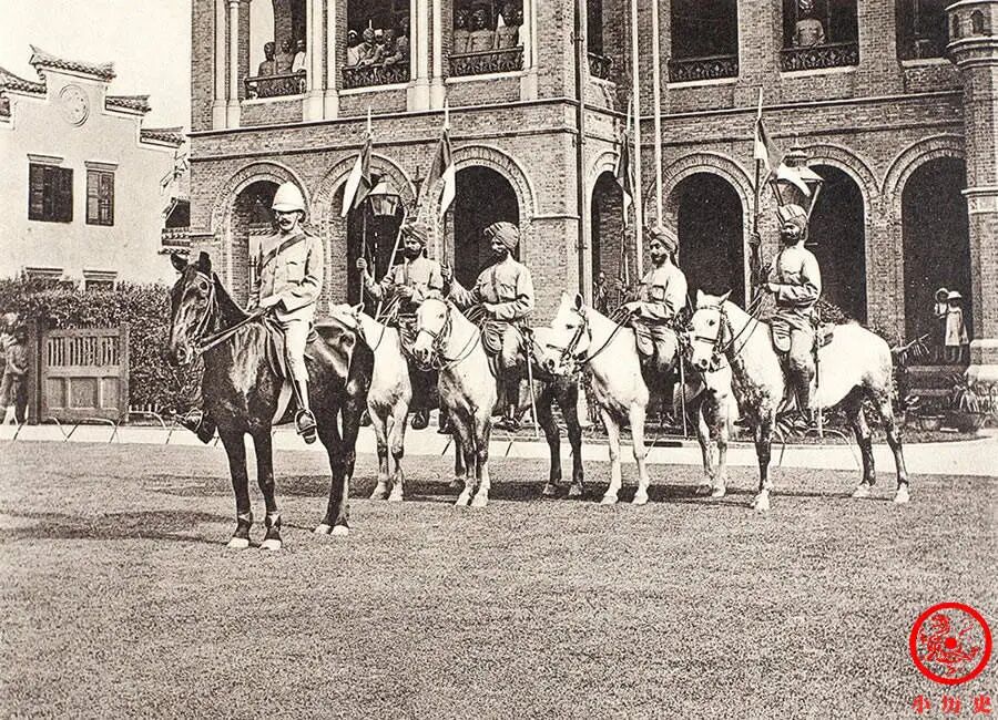 照片中带头的那位是英国军官,后面4人是印度兵。我要提醒大家一点,在晚清时期侵略中国的列强队伍里,有大批印度士兵的身影。他们的训练方法、武器装备都是英式的,代表英军的利益。我们现在未必去追索印度兵欠下的这笔巨债,但在历史叙述中不能不讲清楚。