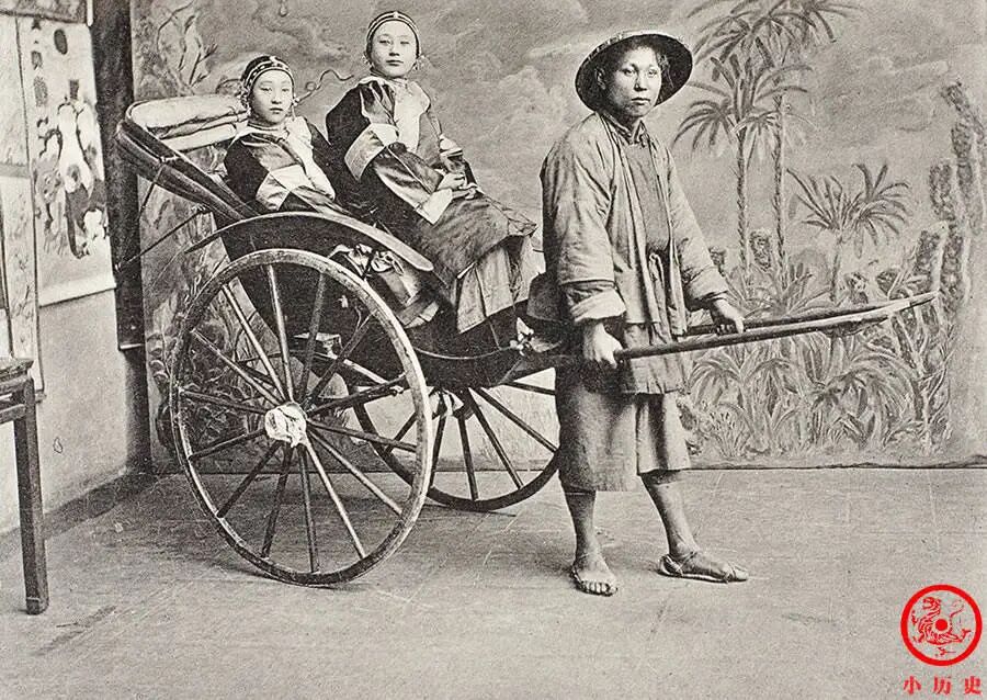 独轮车是一种很便捷的小型运输工具,客货两用,在晚清的城市、农村非常流行。我没乘坐过,我猜想坐在上面不一定舒服吧?
