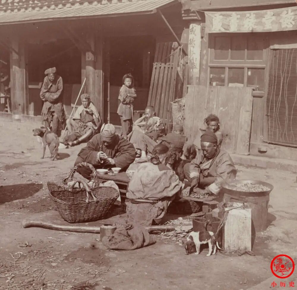 这张照片里男女老少都入镜了,很有代表性,也没有刻意摆拍,为我们提供了一个观察晚清百姓外表形象和精神状态的窗口。文人有记载说底层百姓“愚昧麻木”,你觉得照片记录的景象能为其提供注解吗?