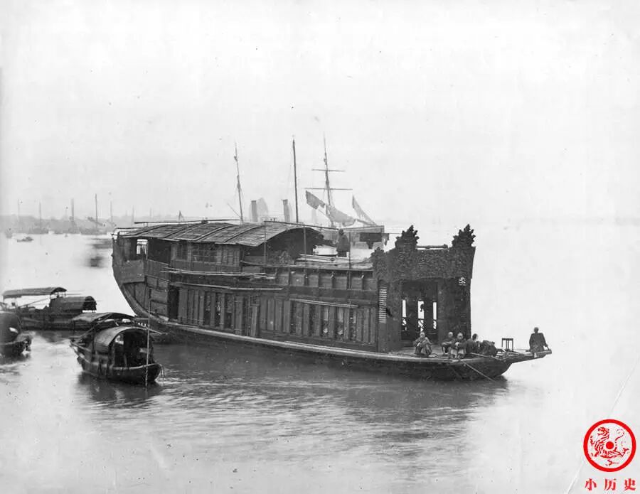 花船是晚清广东的特色娱乐场所,也就是漂浮在水上的青楼,一般都有精美的装饰,白天很平静,到晚上就热闹了起来。清朝文人赵翼曾说:“广州胥船不下七八千,皆以脂粉为生计。”