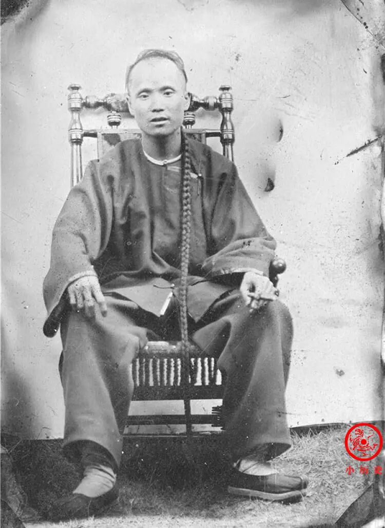 这位男子首先引人注意的还不是他的面相,而是他的又粗又长的大辫子。如果他站起来的话,大辫子可能要拖到脚后跟。晚清时期,经过了200多年的蓄辫生活积累,你建议一个男人剪掉辫子,他大概率要跟你急眼。