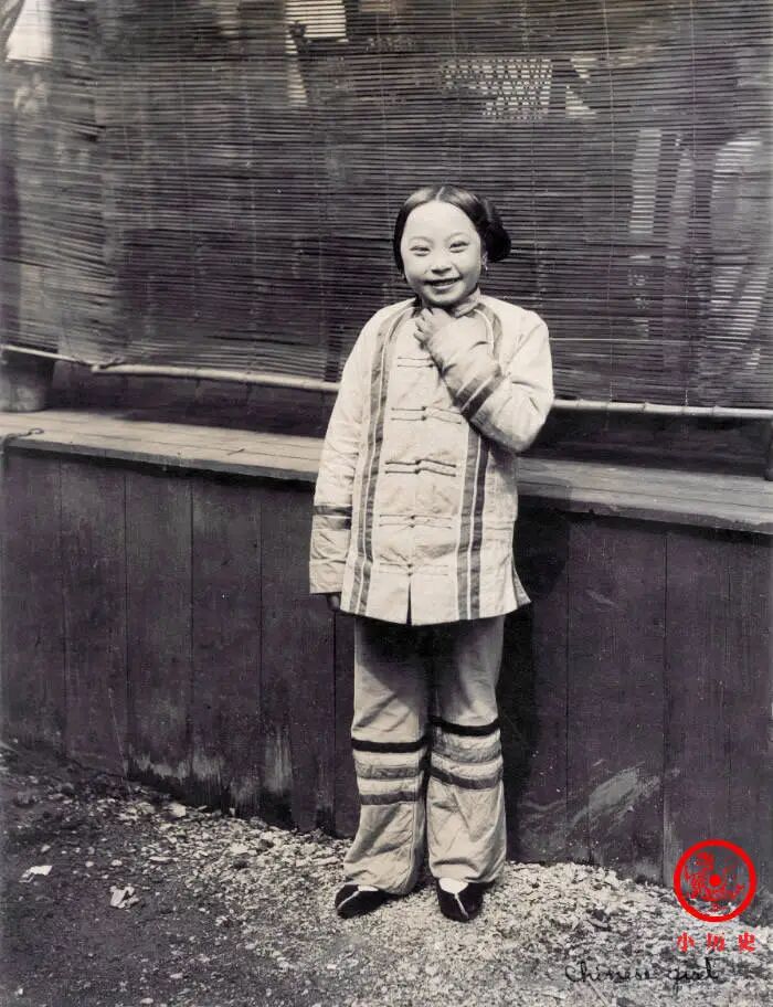这个女孩笑得灿烂而幸福,给人留下深刻的印象。在传统社会中,女性常常面临许多束缚和限制,其中缠足就是一种残酷的习俗。让人欣慰的是,这个女孩并没有被缠足摧残,这也许正是她生活快乐的重要原因之一。