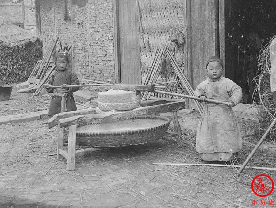 我们看看这个环境,显然是贫寒的农民家庭,两个孩子已经开始干活,帮父母承担家务。俗话说“穷人的孩子早当家”,小小年纪就要品尝生活的酸甜苦辣。在那个时代,这种现象很普遍。