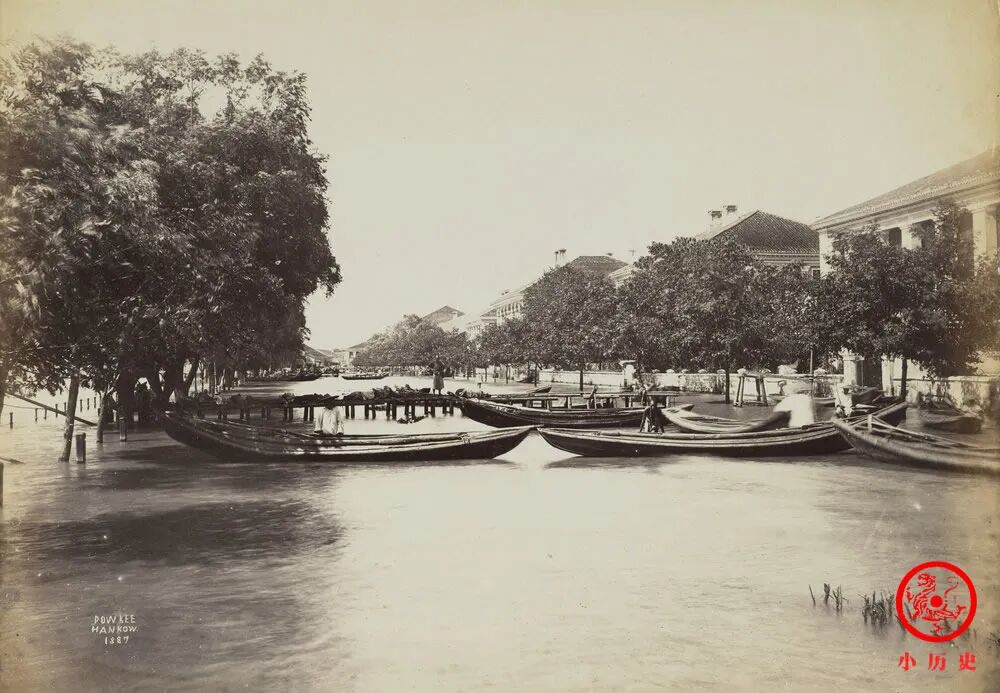 1887年,汉江洪水泛滥,淹没汉口市区,走车走马的道路变成了水路。