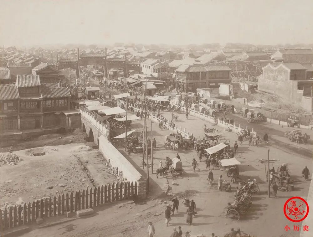 这一组老照片记录了清朝末年北京的街头景观,呈现的是原汁原味的历史风貌。隔着100多年的时光,我们无法置身老北京那个场景,好在这些老照片让时间静止,让不能再现的过往与时间共存。