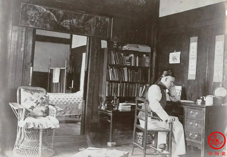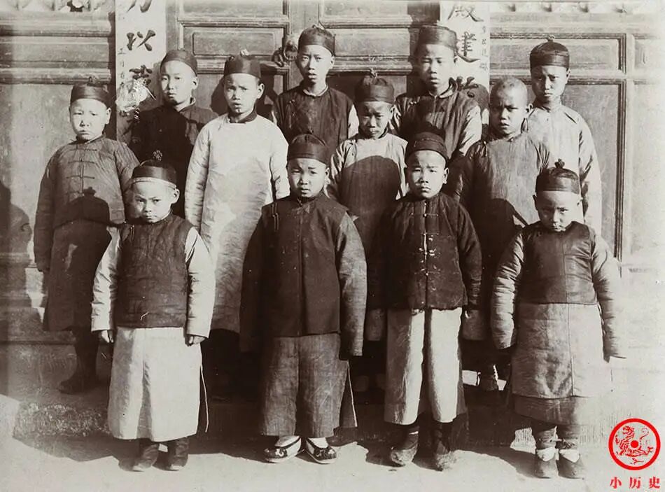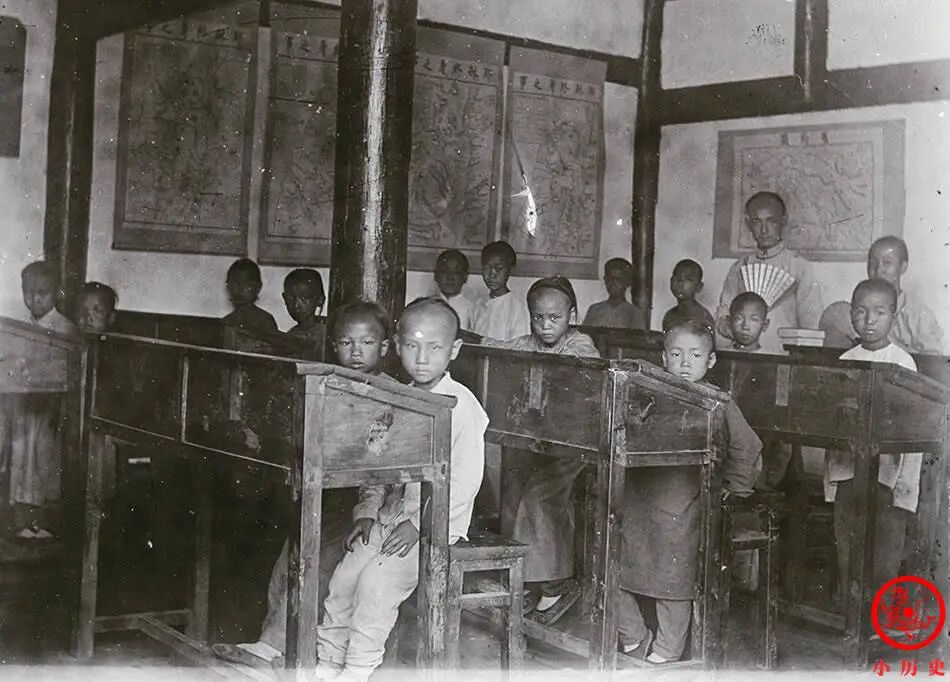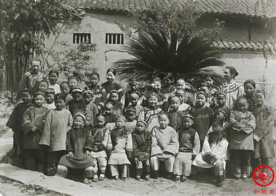 照片场景是三年级的学生在教室里上课。当年少年儿童的入学率很低,官府所提供的教育资源很少,孩子们很难获得读书机会。外国传教士热衷于办学,这为当地孩童提供了识字的可能性,但其办学目的主要还是传教。