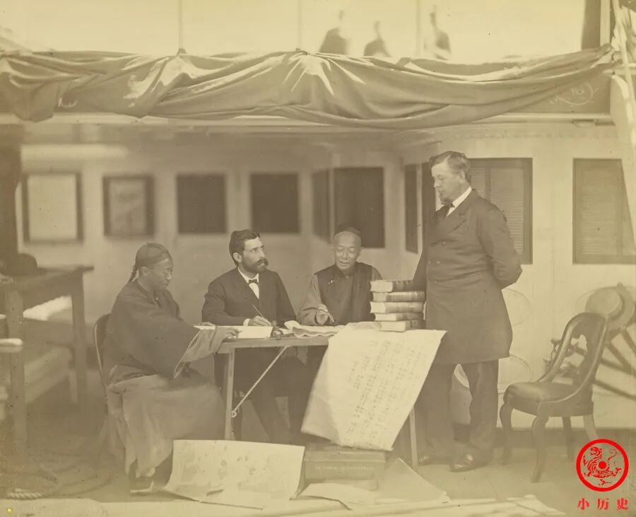 英国传教士李提摩太1870年来到中国从事传教和教育等工作,直到1916年才回国,在华将近半个世纪。李提摩太广泛结交各界人物,与李鸿章、张之洞、曾国荃、左宗棠、康有为等名流关系密切。1902年,山西发生教案,慈禧太后请李提摩太协助处理,事后还请他开办山西大学堂;赐他头品顶戴,二等双龙宝星,并诰封三代。照片中的李提摩太与妻子分别穿着当时清朝官员和汉族妇女的服装,如同归化一般。