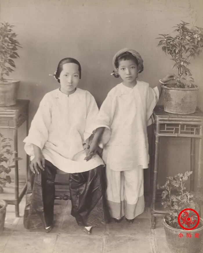 母亲是一位缠足的传统女性,而小姑娘则完全不同,她乖巧甜美,脸型和发型看上去很时尚,非常符合我们现代人的审美。不知道她有没有受到缠足的戕害?