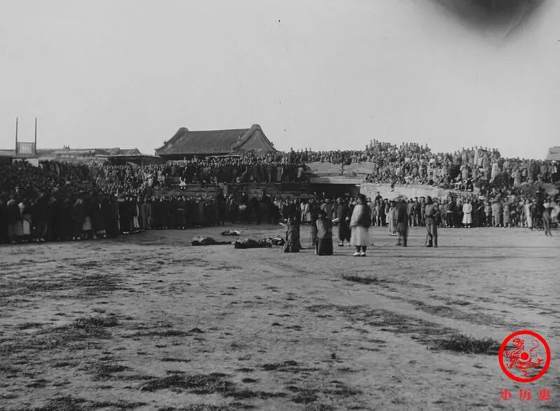 这个场面的拍摄地点可能在北京宣武门外的菜市口。清朝(以前的朝代也这样)行刑都是选在人来人往的闹市,官府鼓励围观,希望用这种方式警示人们守法。不过,这也养成了部分百姓心大、麻木的习性。