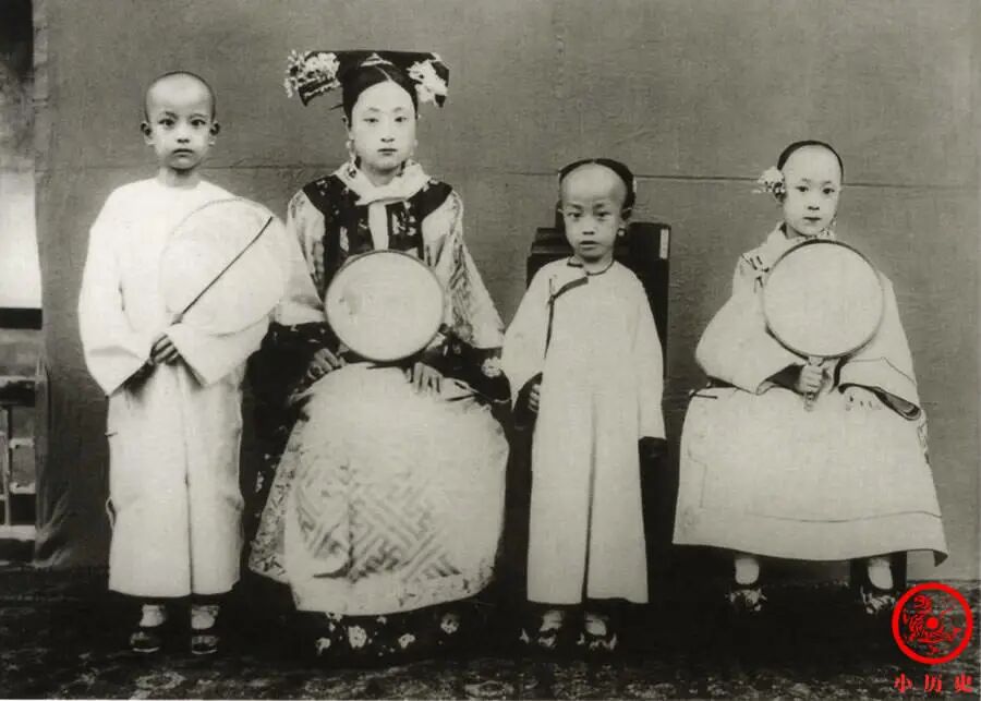照片中前排左一为二格格、左二为四格格,前排右一为六格格、右二为三格格,后排右二为奕劻的大儿媳妇静荣。