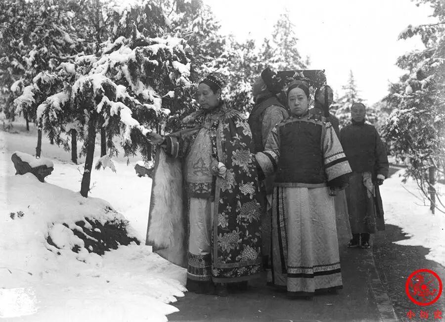 照片中左一为四格格,左二为二格格,右一为三格格。奕劻的几个女儿聪明伶俐,能说会道,经常在紫禁城和颐和园陪伴慈禧太后聊天、游玩,把老佛爷哄得很开心。应该说,这几位格格金枝玉叶,还是很漂亮的。