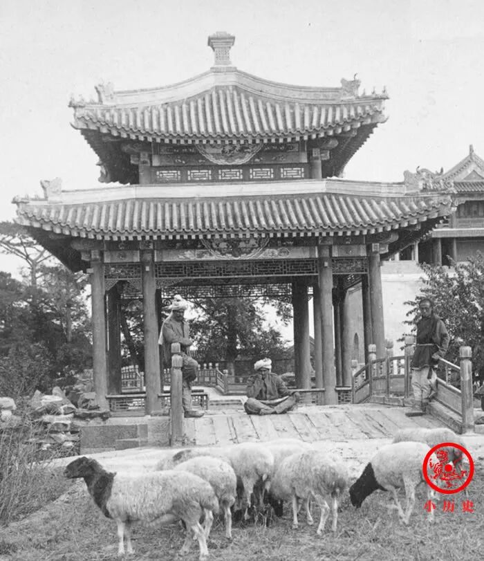 1900年10月,英军占领了颐和园,慈禧太后特别喜欢的这座园林遭受浩劫,几乎荒芜。看来当时英军的管控并不严格,在两名英军锡克士兵的注视下,羊倌把羊群赶到颐和园吃草。慈禧太后要是看到这一幕,鼻子能气歪。