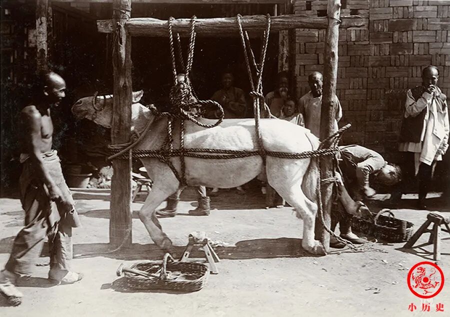 近几年还有哪位朋友见过这个场景吗?现实生活中已经难得一见了。骡马的蹄子始终处于生长状态,如果任其发展就会影响行走,所以必须经常修剪,也有的加上马蹄铁,更有利于骡马长途奔走和驮重。