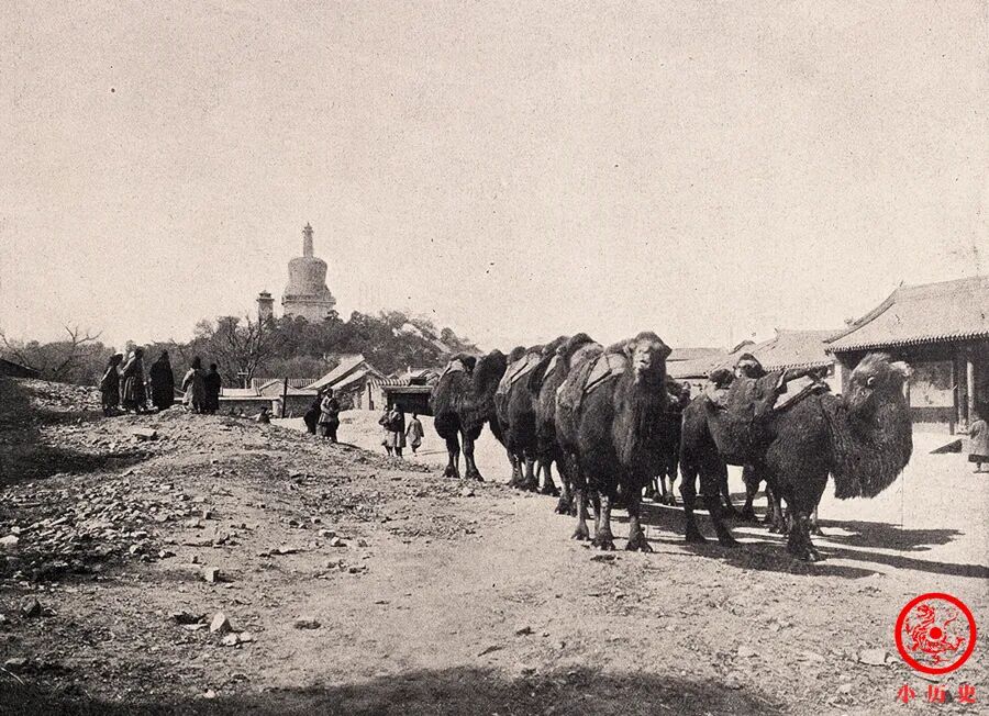 我们在照片中很清晰地看到了北海的白塔。陟山门大街连接北海东门与景山西门,全长300米左右,是清朝皇帝从北海去景山登山游玩时的专用御道。街道两边均为内务府衙门和内官监管辖的库房、作坊等,一般百姓很难涉足此地。
