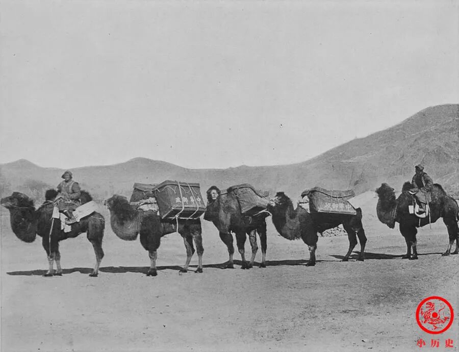 在张家口与库伦之间运送信件的驼队。