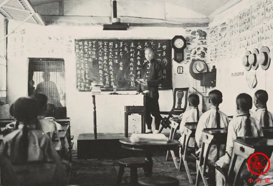 新式学校的师生在上课。