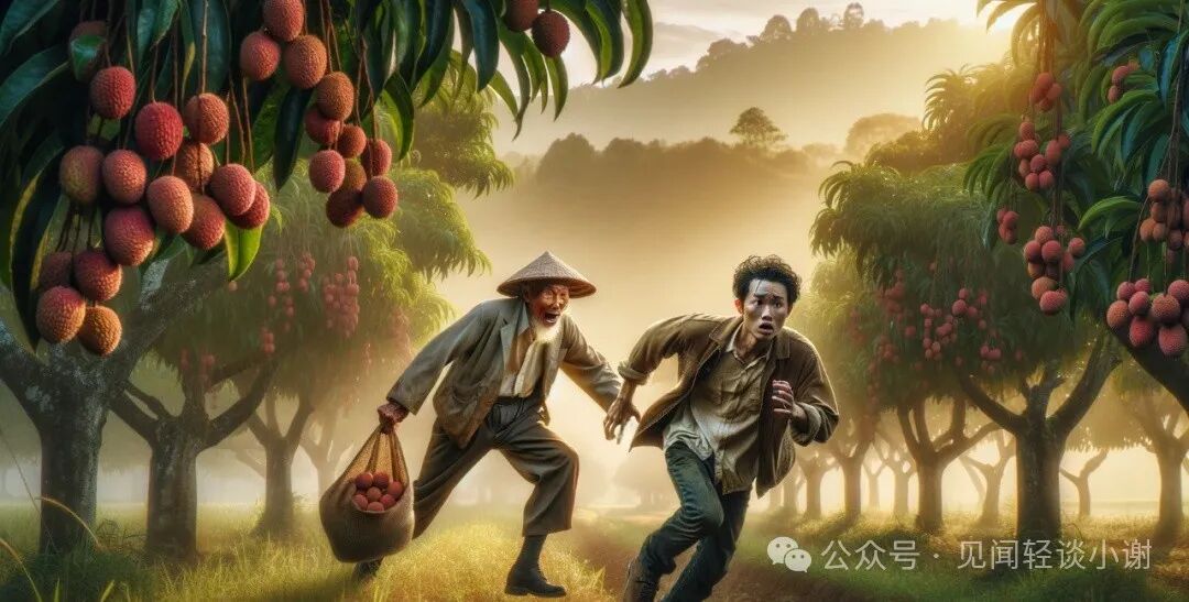 在清晨,一起荔枝园内的偷窃事件引发了一名人员的意外受伤,并由此引发了法律争议。