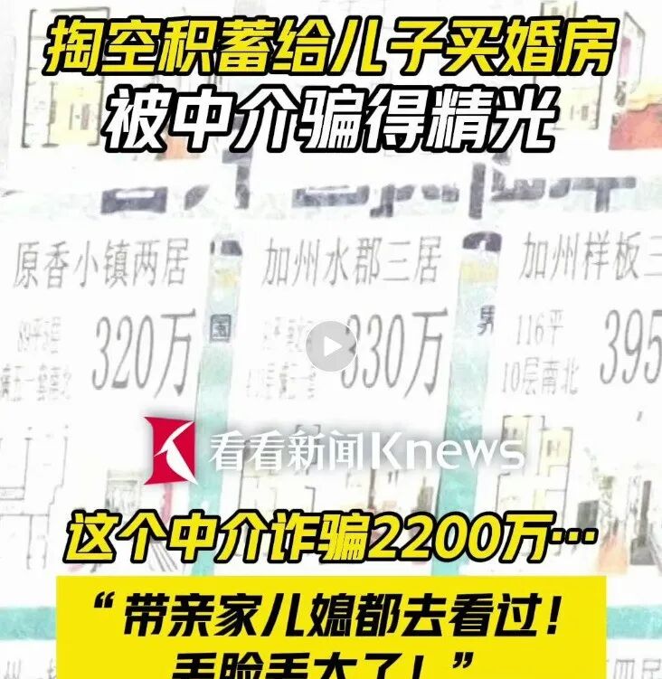 在浦东新区一桩房产中介诈骗案中,一名女士被骗2200万元,为儿子购置的婚房变成了一场空。