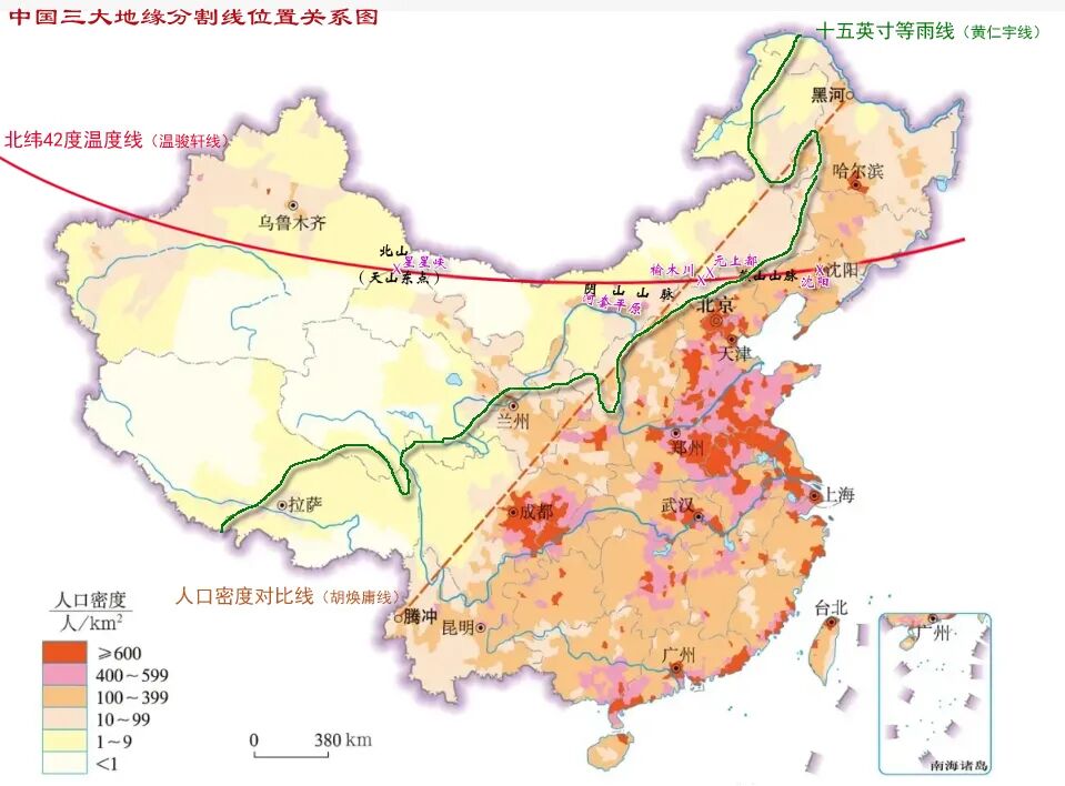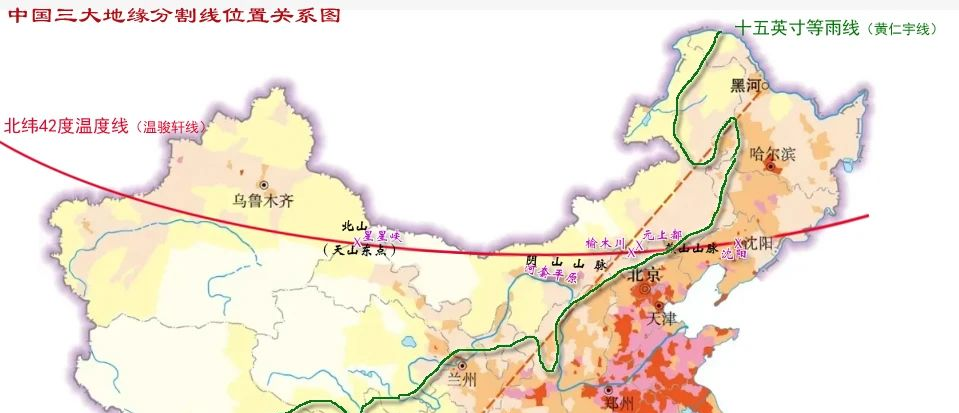 1949年,北京城再一次被即将统一中国的新政权选定为都城。复盘北京城在古代充当都城的这些历史,我们会发现北京城虽然离长城过近,不符合大多数中原王朝选择都城的要求,但当你把东北地区、蒙古高原都纳入视线时,这个三方交汇之地又是那么的合适。尤其是当你把影响中国历史进程的:十五英寸等雨线、胡焕庸线、北纬42度温度线交叉,会发现北京城是距离三线交汇处最近的古都。