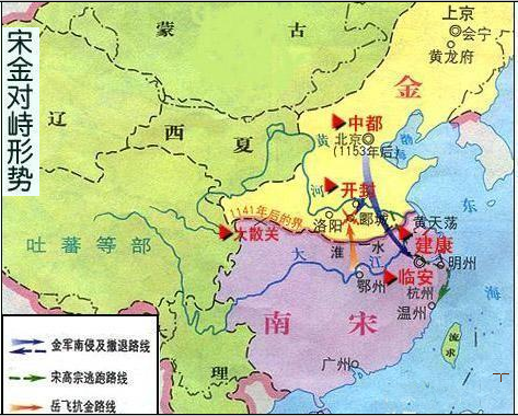 1141年,在南侵江淮失败后,金与南宋签订“绍兴和议”,以秦岭、淮河为界划分疆土。
