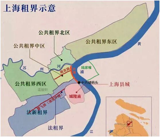 随着通商口岸的开放,租界这一特殊的历史产物开始出现的上述城市。1845年,根据南京条约及相关补充条约的约定,英国首先在苏州河与上海县城之间的外滩地区建立租界。今天游客在外滩见到的万国建筑群,以及东西向与之交叉的南京路,正是当年租界的核心。在精于商业的英国人看来,这块当年因水患被上海县城放弃的两江交汇之地,却恰是整个上海最具体商业价值的区位。