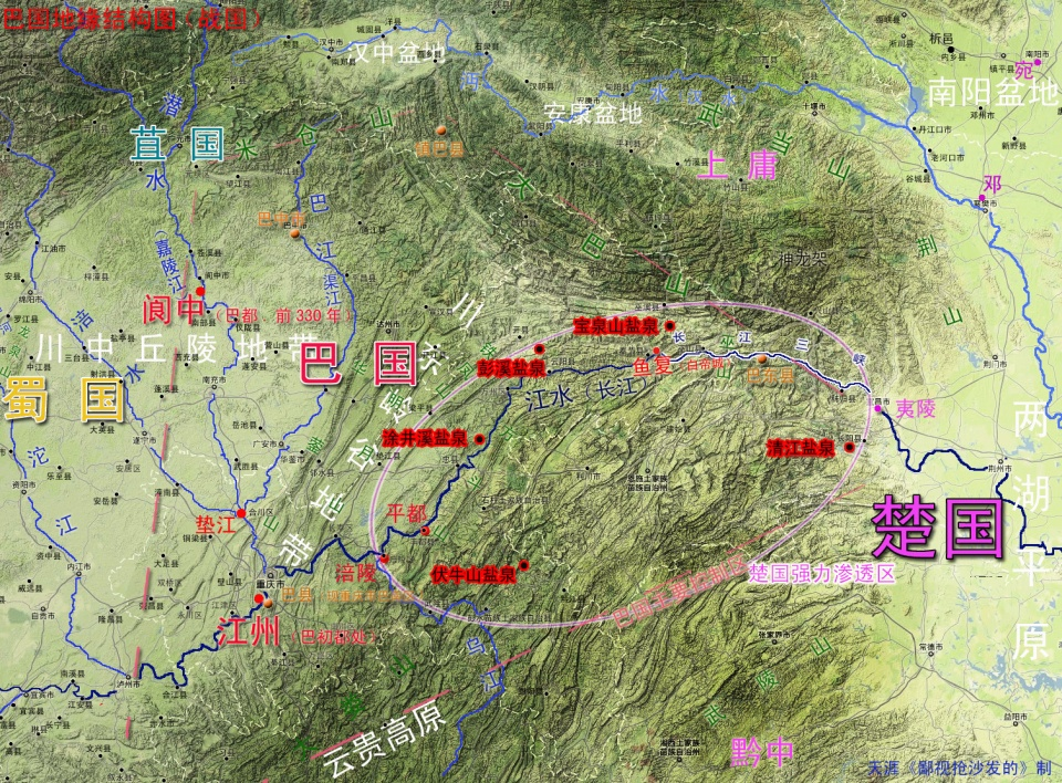 蜀国的基本盘是川西的平原区,巴国的基本盘则是川东的山地,二者之间则是两大势力相争的川中丘陵地带。