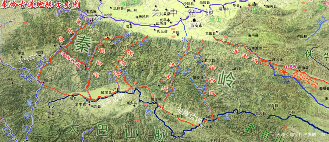 绝大多数情况下,人类在穿越山脉时都会沿着河谷上溯,在翻越分水岭之后,再顺着另一条反方向的河谷进入山脉的另一面。秦岭和大巴山脉降水丰沛、河流众多,并不缺少可供选择的河谷。问题在于这两条中国核心区最“厚”的山脉,山间河谷两岸多为悬崖绝壁,并不像一般河谷那样多少有点冲积平原供人类通行。