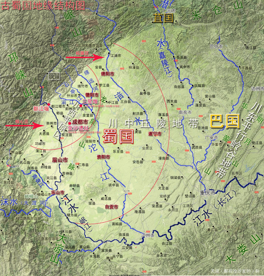 事实上如果再往前追溯,你会发现从蜀地的神话时代开始,成都所在的这片平原就已经是蜀地的中心。以至于任何一个中原王朝想控制四川,乃至整个大西南,所要搞掂的都只是成都这一座城。