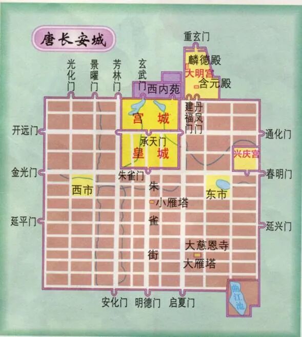 值得一提的是,长安城内部以位于中轴线上的朱雀大街为分割线,设置了两个相当于现在“区”级行政区的附郭县,西为“长安县”,东为“万年县”。长安-万年,合在一起倒是单比长安口彩更好。