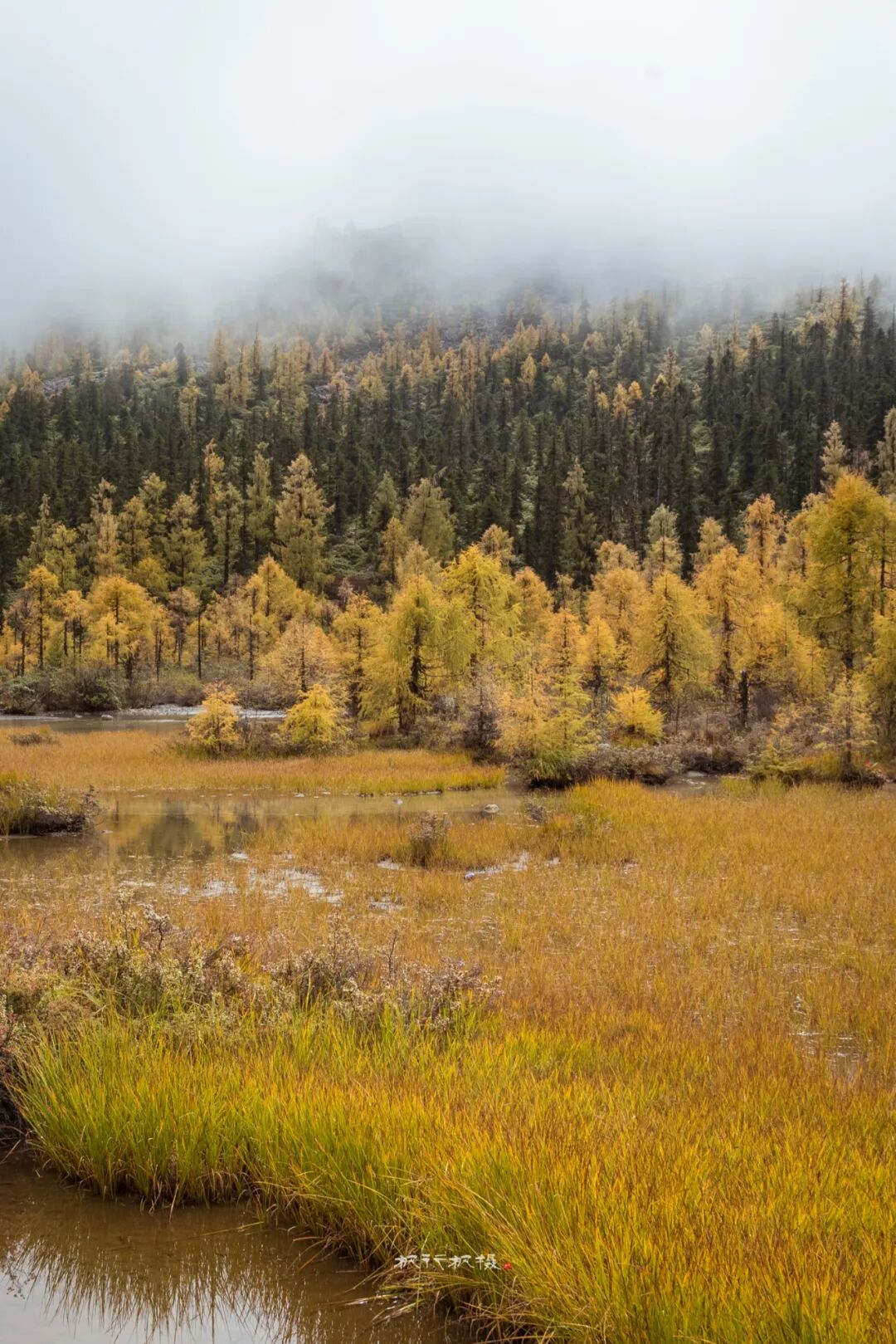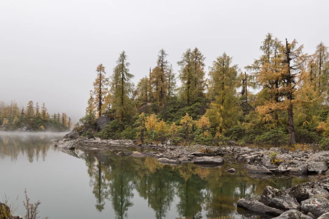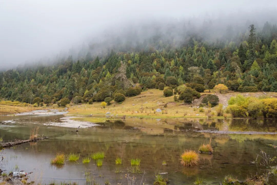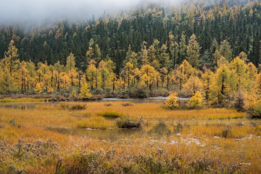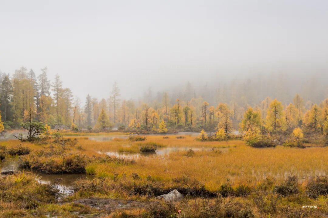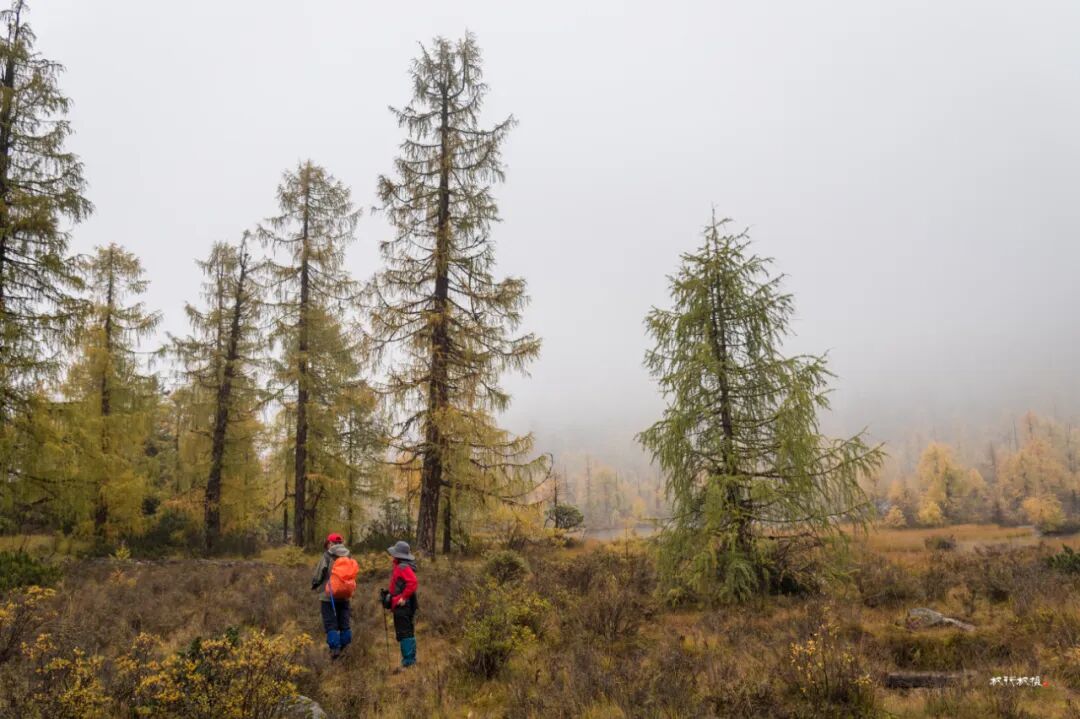 以摄影人的观点评价此次党岭行运气不佳,早晨阴雨绵绵,一路上爬山气喘喘嘘嘘,几步一歇,前半程连拿起相机的欲望也没有。登山后半程景色渐佳,可惜雾大;终于爬到葫芦海,可惜四周白雾一片,完全看不见远山秋色。高耸的雪山和去大海子的路也完全淹没在浓雾中。我们在海子边坐等一小时,终于等到雾偶尔散去一些,欲抱琵琶半遮面的葫芦海美不胜收。下面用照片记录此次徒步葫芦海行程。