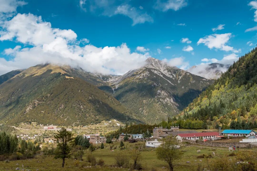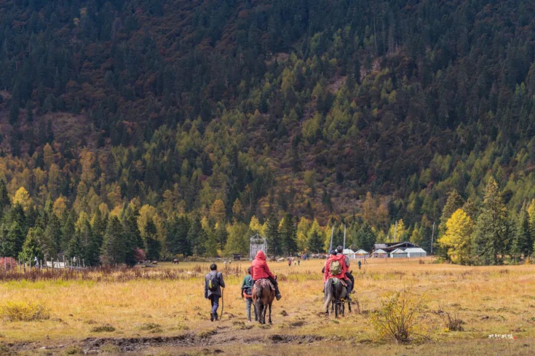 每年十月党岭便笼罩在迷人的秋色之中,满山遍野的彩林,雄伟壮丽的雪峰、星罗棋布的高山湖泊(海子)、悠闲流淌的清澈小溪、金黄似毯的高山草甸,构成一幅美丽图画。