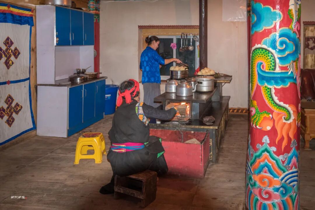 清晨,藏族婆媳在给我们准备早餐和路上的干粮。