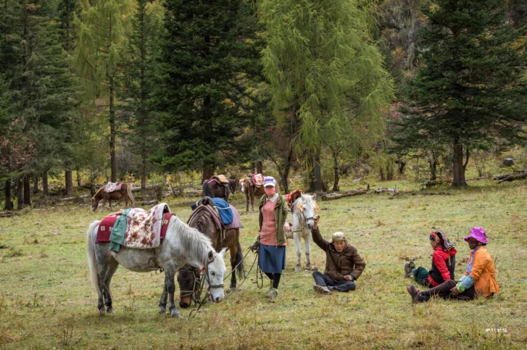 党岭村距离丹巴县城大约68公里,看起来不远,不过路况非常不好,我们此次自丹巴县城驾车近四个小时,晚上九点半才到村书记家住宿。早晨天气阴雨,6:45天还未全亮,我们便从党岭村向葫芦海进发。党岭村海拔3360米,自党岭村到葫芦海只能骑马或徒步,因为骑马只能走到全程三分之二处,后三分之一路段马匹也不便通行,我们选择徒步上山。