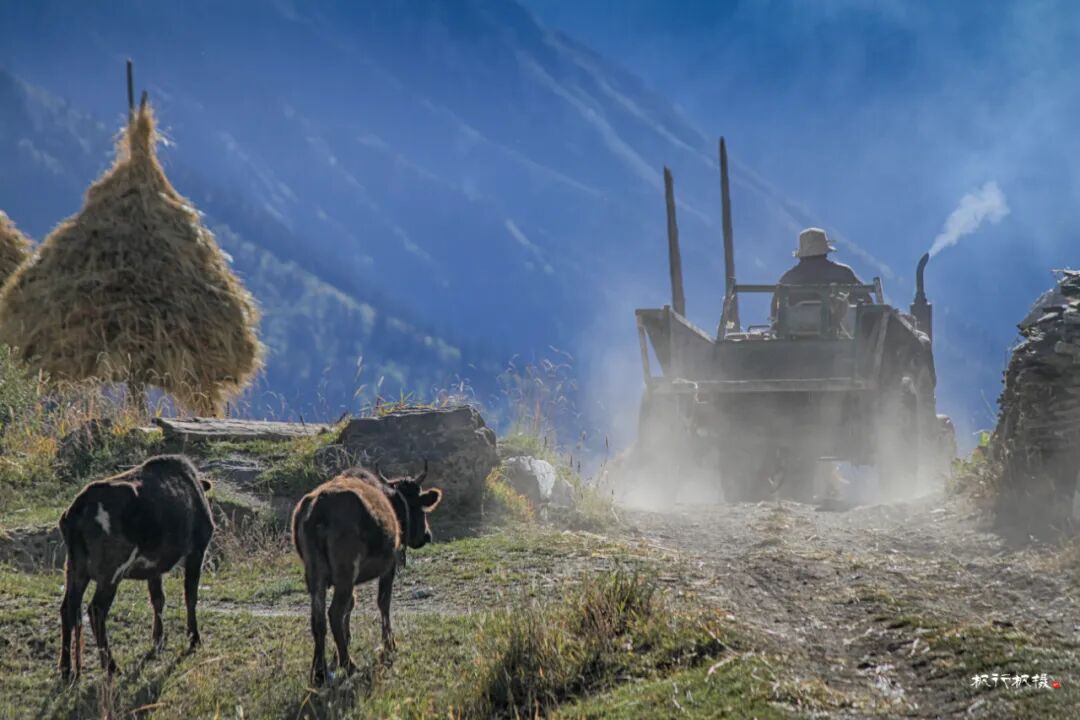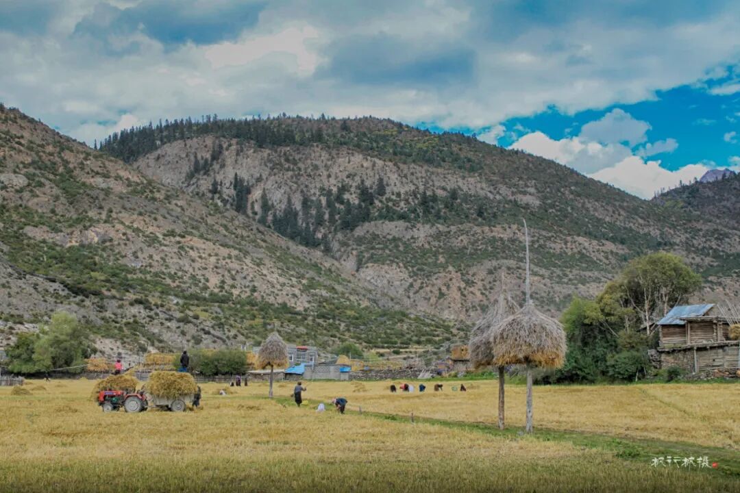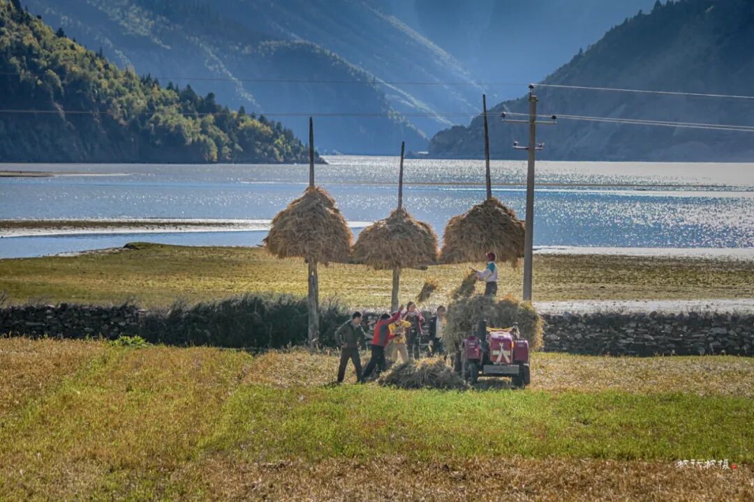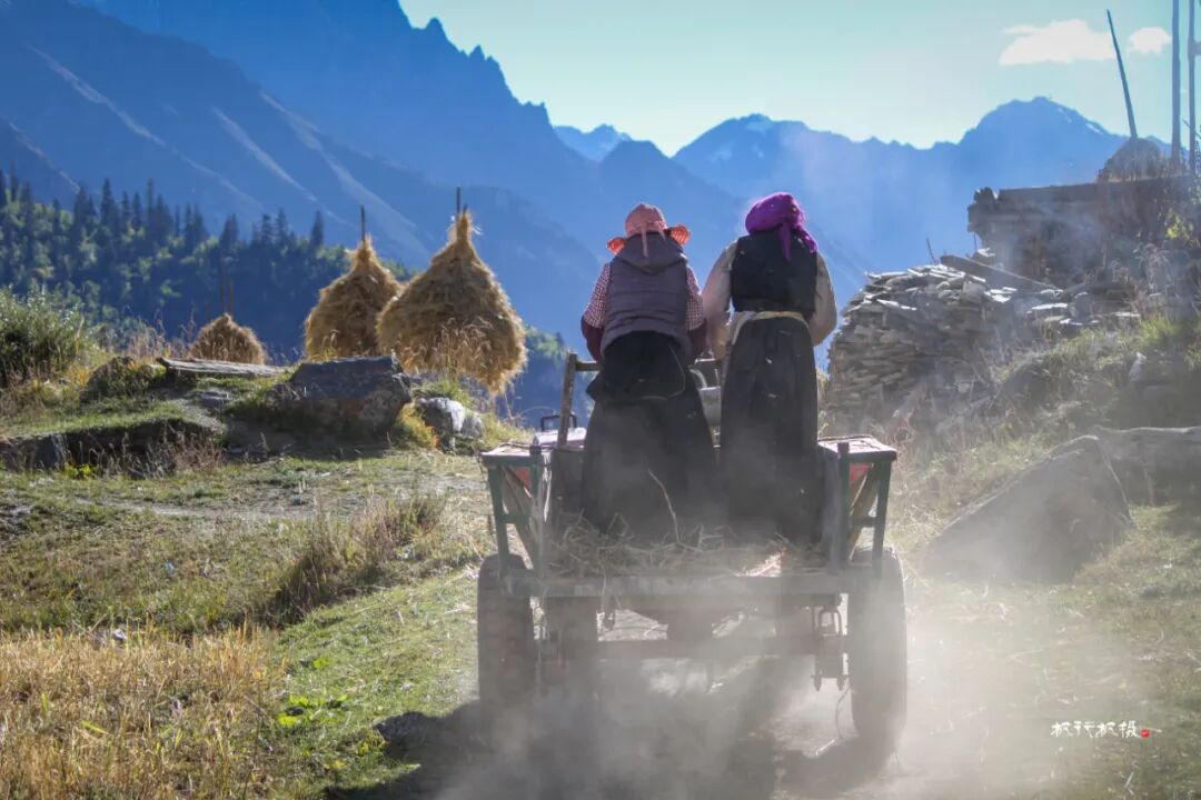 田野上是忙着收割的人们,拖拉机满载着收割的青稞在田野和村庄间穿梭,拖拉机也满载着她们秋天的喜悦。