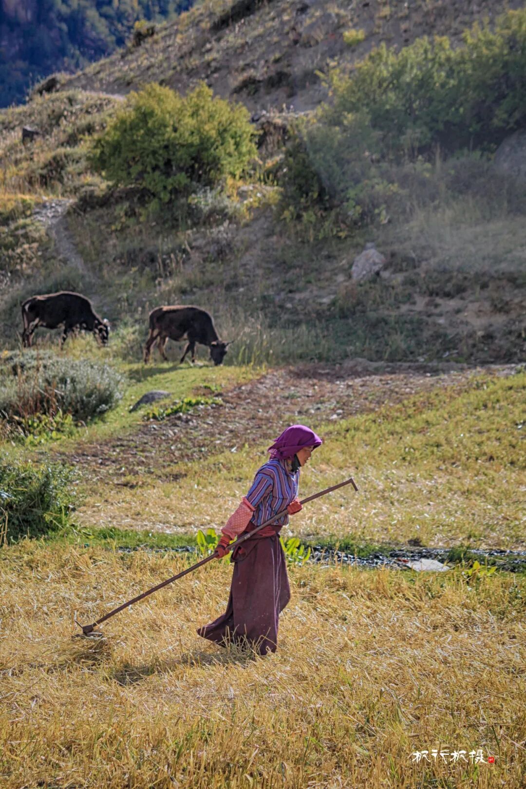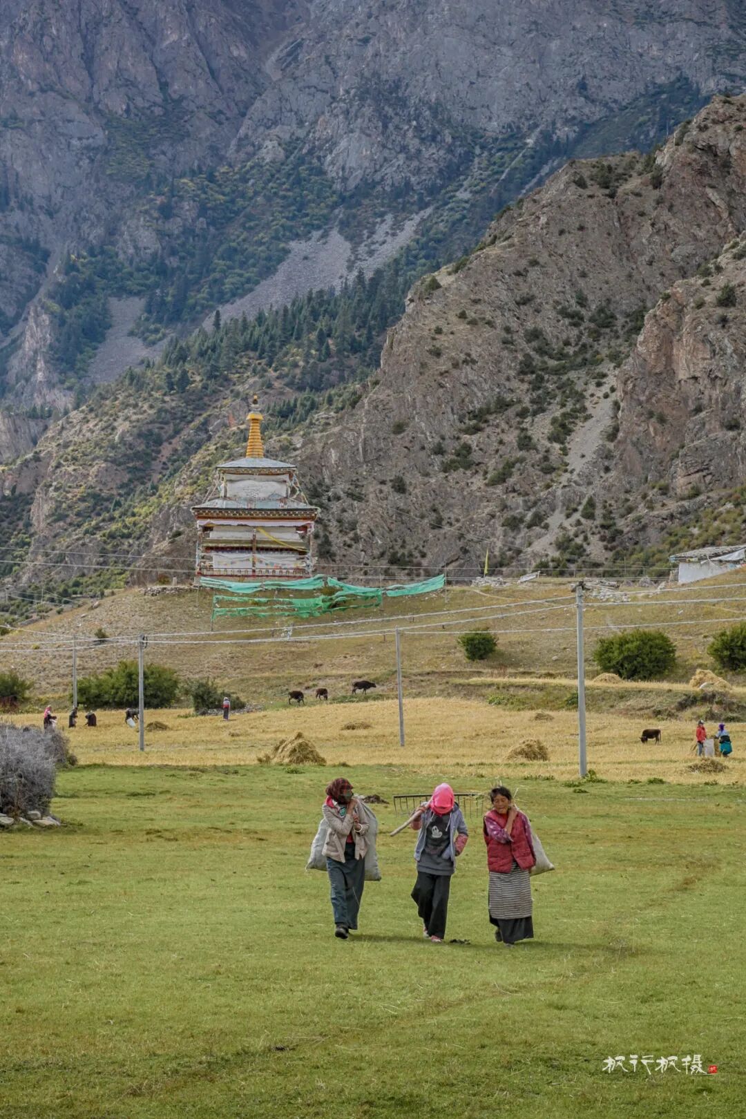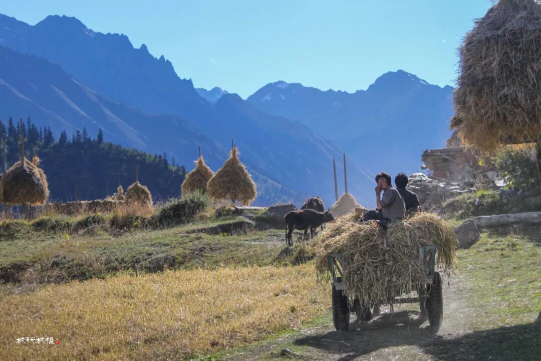 田野上是忙着收割的人们,拖拉机满载着收割的青稞在田野和村庄间穿梭,拖拉机也满载着她们秋天的喜悦。